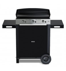 Plaque 62 x 36 cm en fonte émaillée de 7 mm Brûleurs double rampe / 3 brûleurs = 3 zones Température réglable de 120 à 360°C / Châssis inox Chariot 2 roues acier galvanisé Noir / 2 tablet