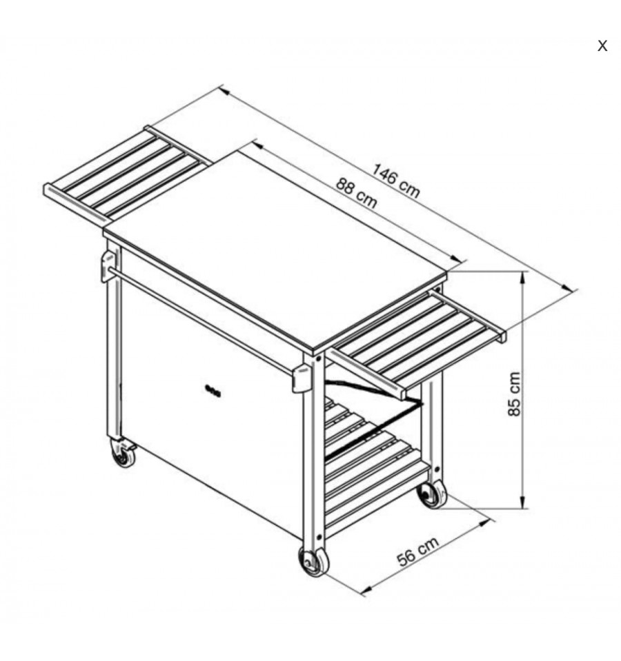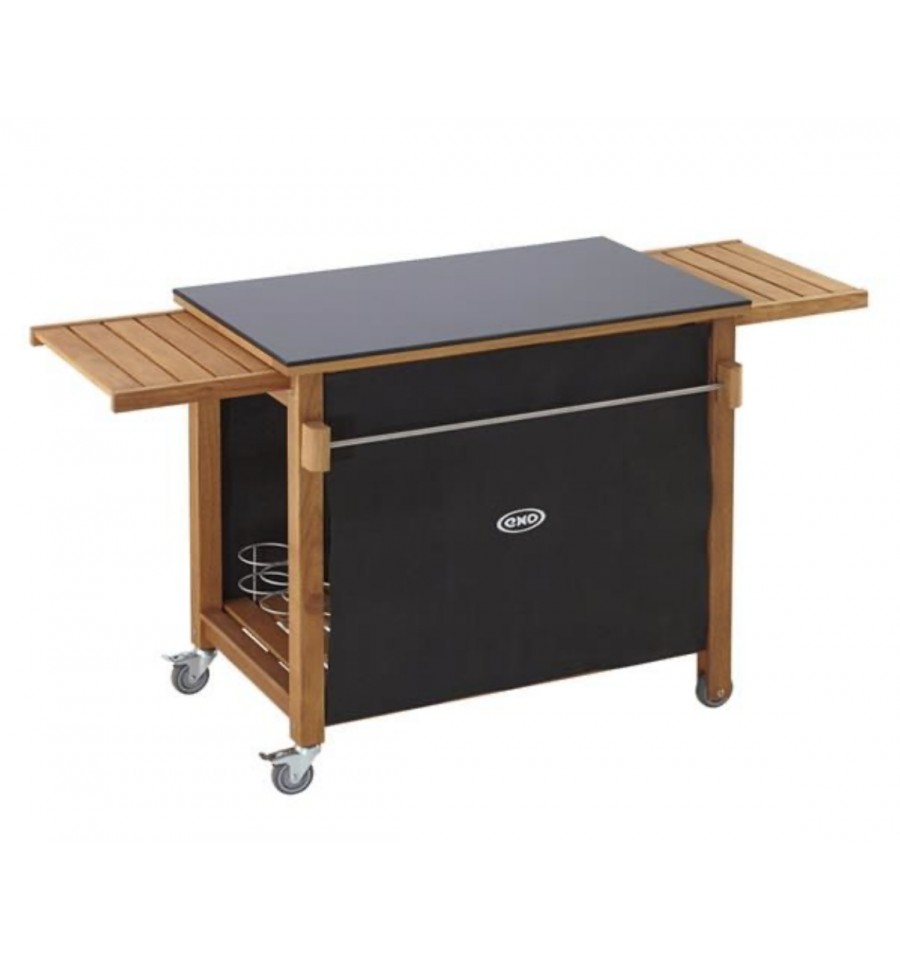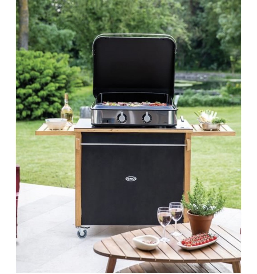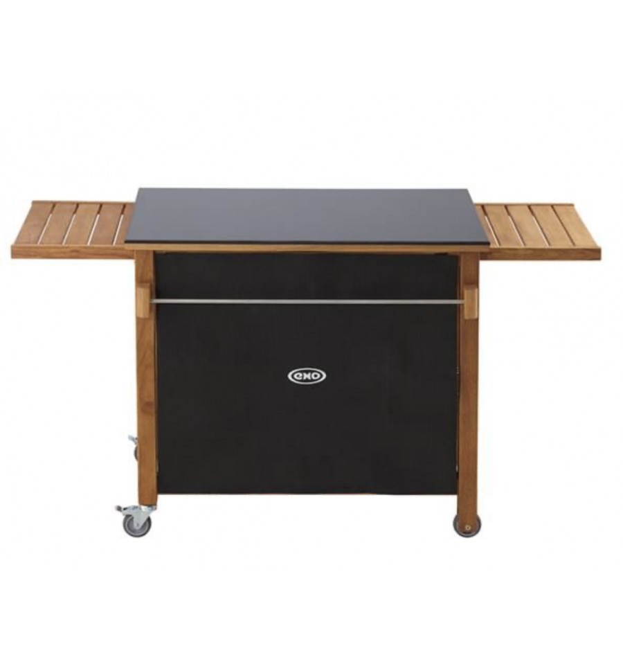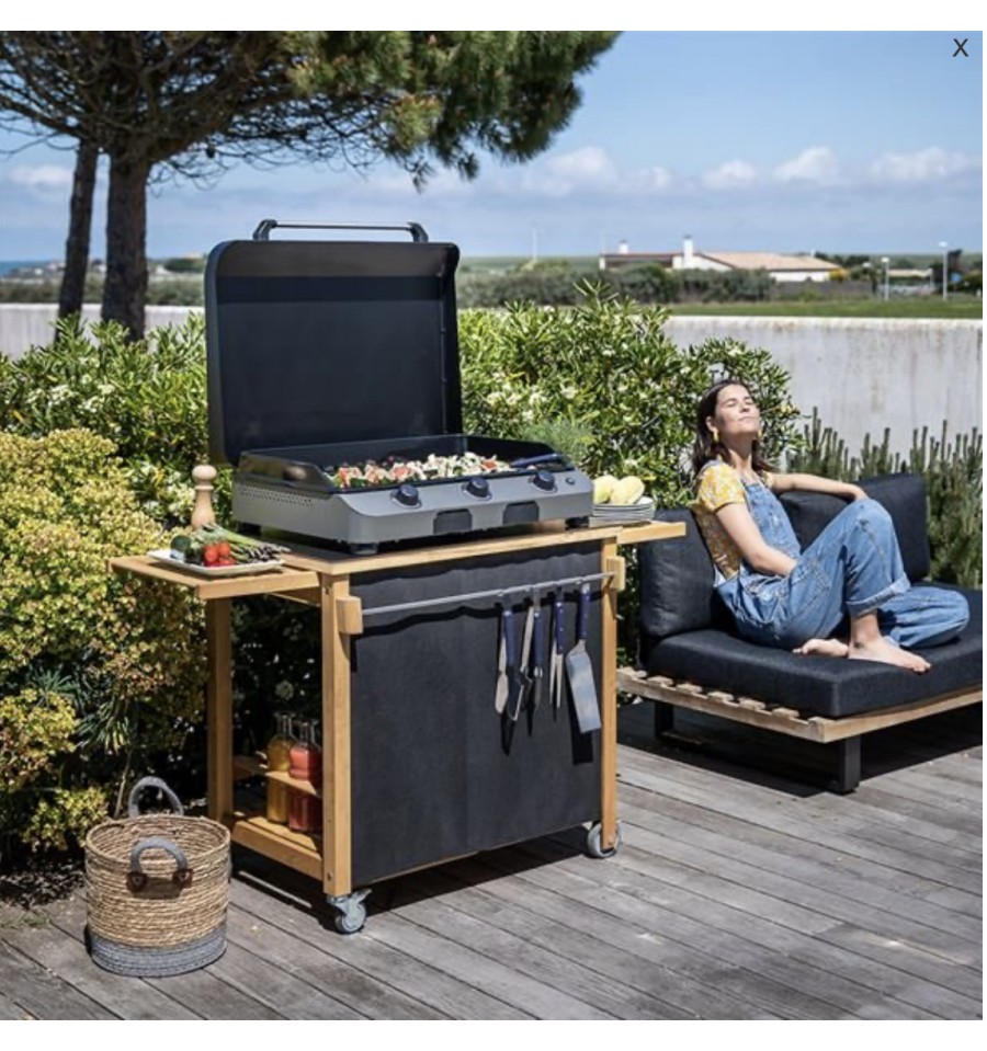 Desserte pour planchas 45, 60 et 75 cm - Structure en robinier huilé (bois imputrescible) avec plateau en HPL (Résiste aux intempéries et supporte toutes les tailles de plancha) - 2 tablettes coulissantes - 2 rideaux cache bouteilles - Range-bouteilles - Barre accroche torchons - 1 étagère basse - 4 roues dont 2 multidirectionnelles à frein (facile à déplacer même chargée) - Garantie 2 ans.