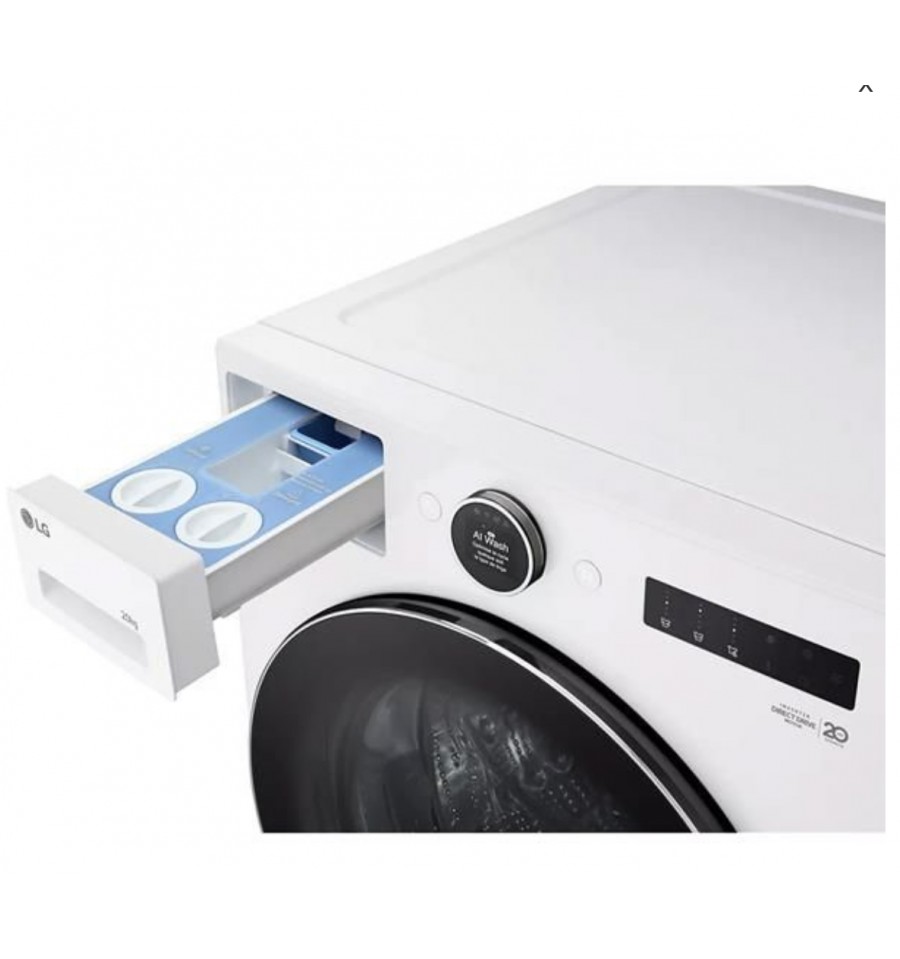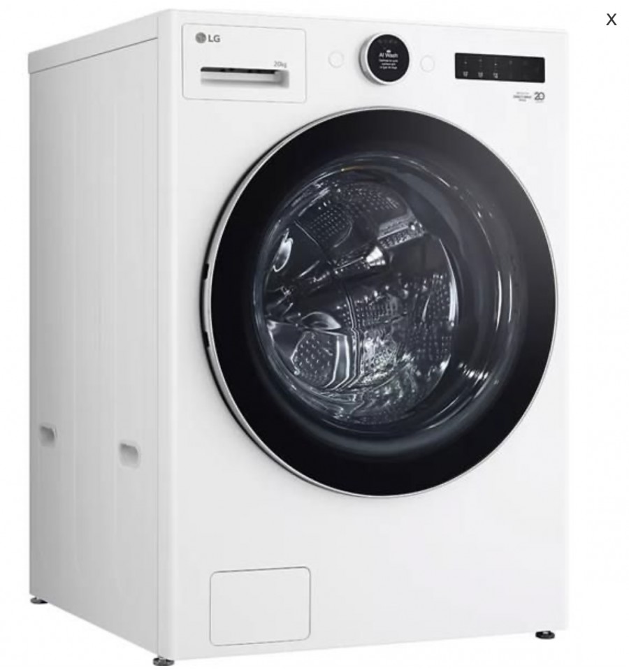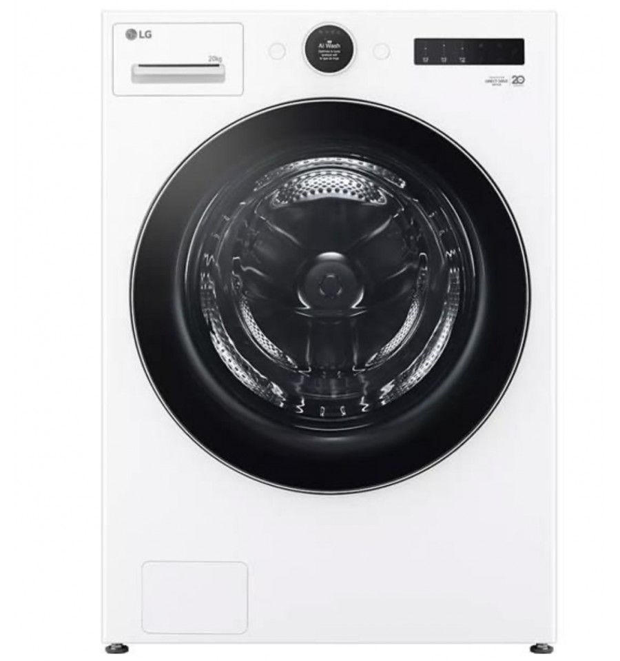 Lave-linge frontal LG F20F12WST - Avec une capacité exceptionnelle de 20 kg et une vitesse d’essorage maximale de 1000 tr/min, il est conçu pour les foyers les plus exigeants - Il propose un large choix de programmes dont Coton, Eco 40-60, Mix, Duvet, Hygiène, Soin bébé, Textiles de sport, Lavage silencieux, Anti-allergie et Laine/à la main, auxquels s’ajoutent des cycles spécialisés comme le Nettoyage de la cuve ou le programme téléchargeable via l’application - Les options incluent la vapeur Steam, le lavage rapide TurboWash 360°, le pré-lavage, la fin différée de 3 à 19 h, l’ajout de linge en cours de cycle ainsi qu’un verrouillage enfant pour plus de sérénité - Côté confort, ce modèle intègre la connectivité LG ThinQ qui permet un démarrage à distance, le suivi de consommation, le téléchargement de programmes et la fonction Smart Diagnosis pour un entretien facilité - Son moteur AI Direct Drive à induction détecte intelligemment le type de textile et adapte les mouvements du tambour 6 Motion Direct Drive pour un soin optimisé - Le tambour en inox de 142 litres, associé à un hublot en verre trempé de 30 cm, garantit robustesse et hygiène durable - Sécurité enfants, redémarrage automatique, détection de charge, antibalourd et signal de fin de cycle complètent ses protections - Avec un design blanc brillant rehaussé d’une molette argentée et d’un affichage digital LCD + LED, ses dimensions de 99 x 70 x 83 cm en font un appareil spacieux et moderne.